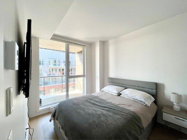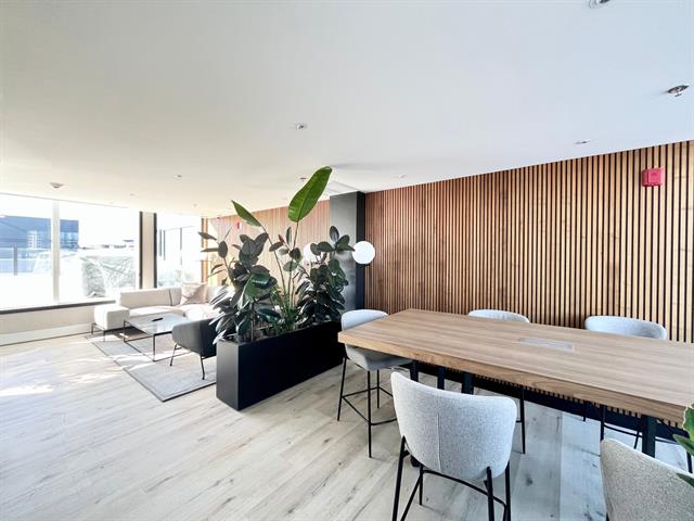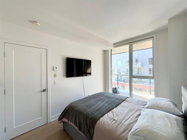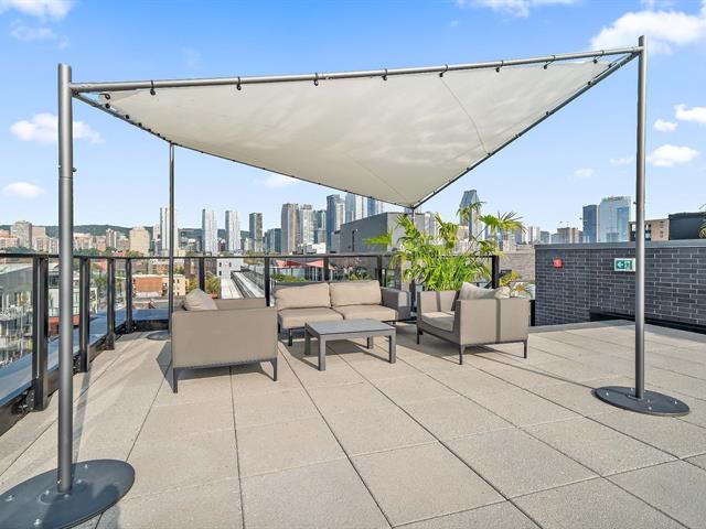 The unit stands out for its abundant natural light and spacious living area. It also features a very large private balcony. The building offers high-quality common areas, including a rooftop pool and a glass-enclosed gym on the top floor with city views. Common areas are also available for work or relaxation. Its strategic location, near the Lachine Canal and a BIXI station, provides easy access to Atwater Market, Georges-Vanier metro station, as well as numerous nearby shops and services.